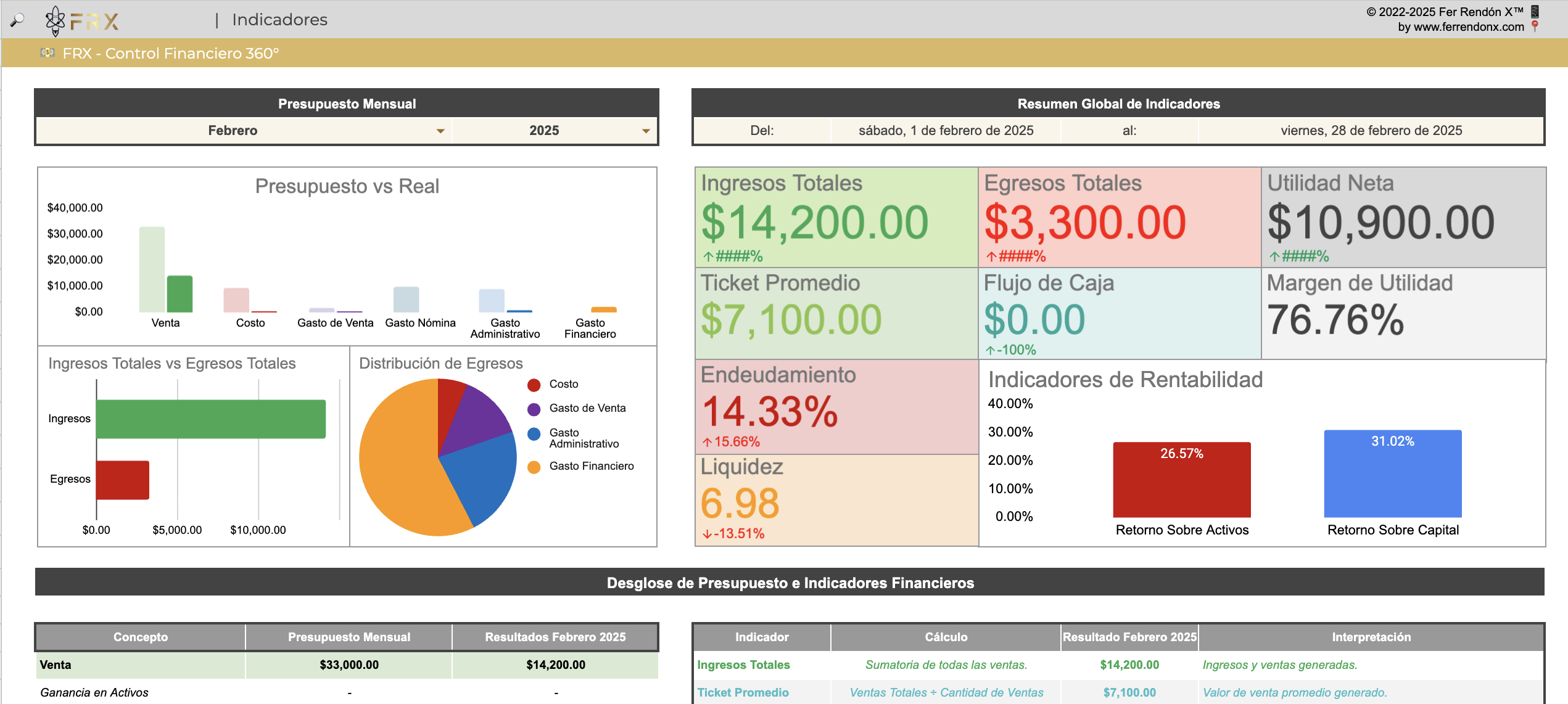 En las finanzas, el análisis oportuno marca la diferencia, y esta herramienta está diseñada para ayudarte a evaluar de forma sencilla y visual el desempeño de tu negocio, identificar oportunidades y proyectar tu crecimiento con mayor certeza.