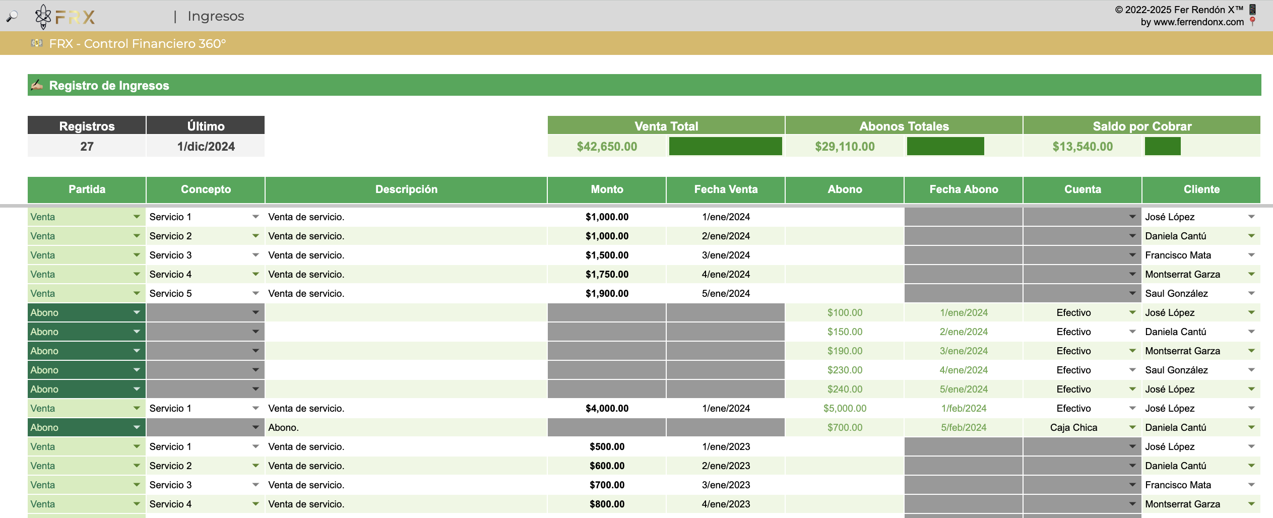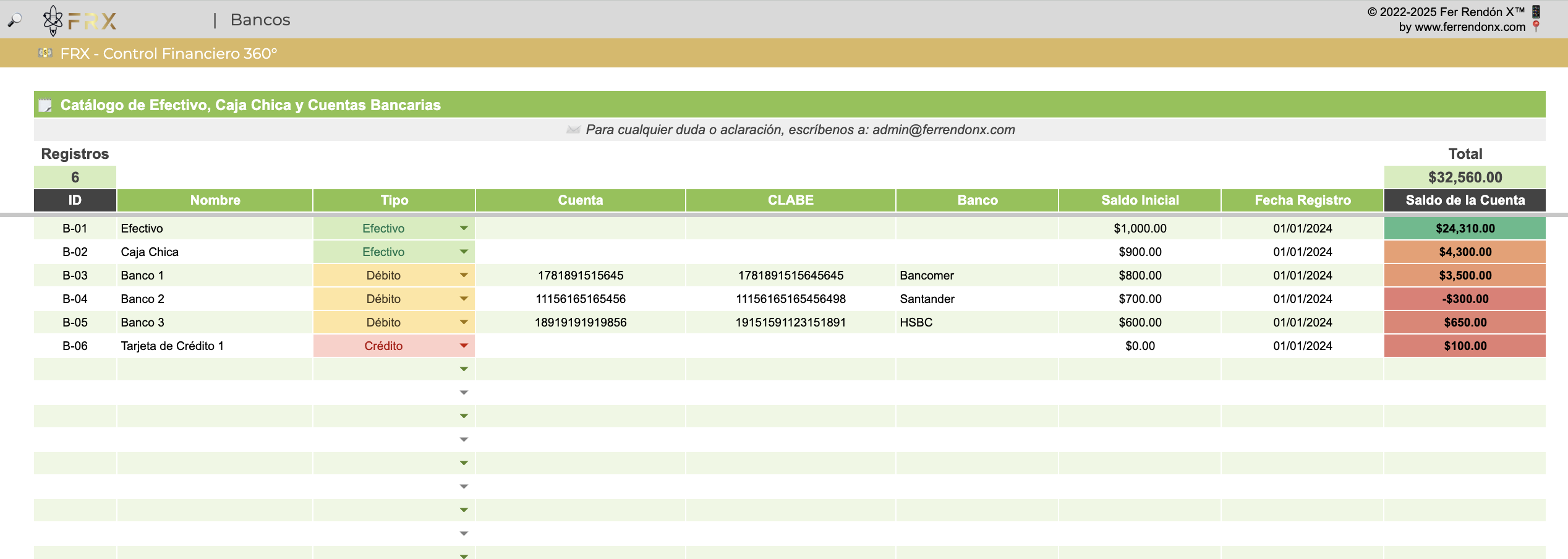 Lleva el registro financiero de tu negocio de forma simple y amigable en nuestra herramienta de control financiero 360° en Google Sheets.