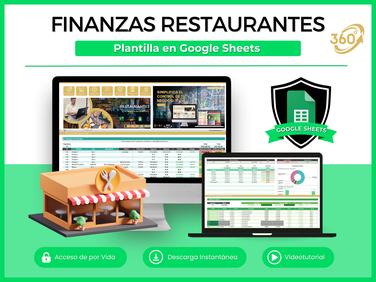 Te presentamos nuestro Kit de Plantillas para Restaurantes en Google Sheets 360°, un paquete de herramientas que te va a ayudar a llevar el control de tu negocio de forma más organizada, clara y rentable. 📊